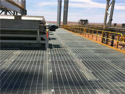 檢修平臺鋼格柵板是用扁鋼按照一定的間距和橫桿進行交叉排列,并且焊接成中間帶有方形格子的一種鋼鐵制品,檢修平臺鋼格柵板主要用來做鋼結(jié)構(gòu)平臺板,鋼梯的踏步板等.檢修平臺鋼格柵板一般采用碳鋼制作,外表熱鍍鋅,可以起到防止氧化的作用。檢修平臺鋼格柵板也可以采用不銹鋼制作。檢修平臺鋼格柵板具有通風(fēng),采光,散熱,防滑,防爆等性能。檢修平臺鋼格柵板應(yīng)用范圍極其廣泛···